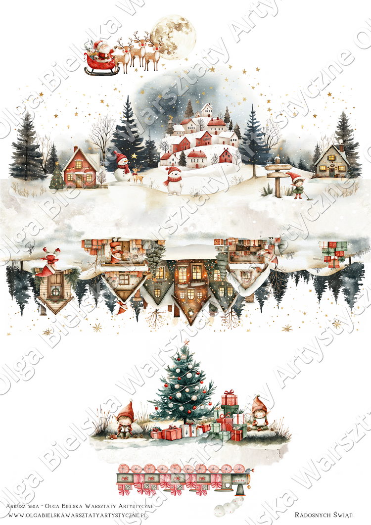 Arkusz A3 580A dwustronny wioska św. Mikołaja pop up świąteczne scrapowanie 2025