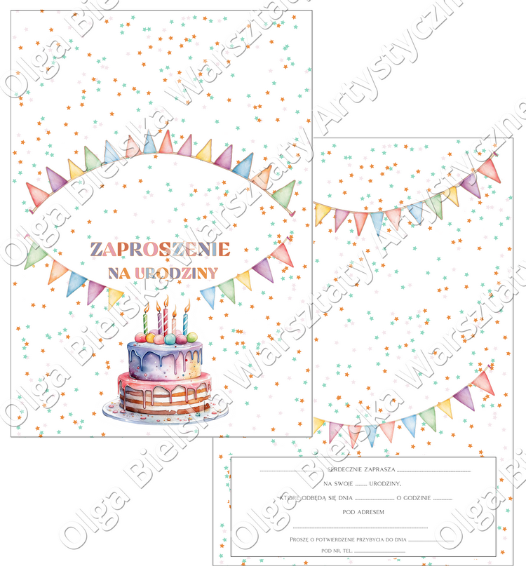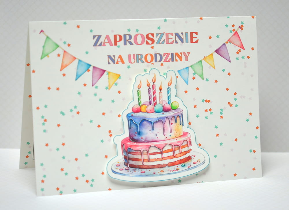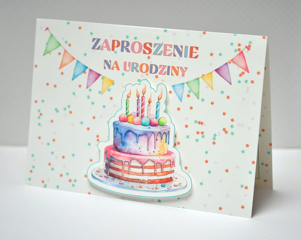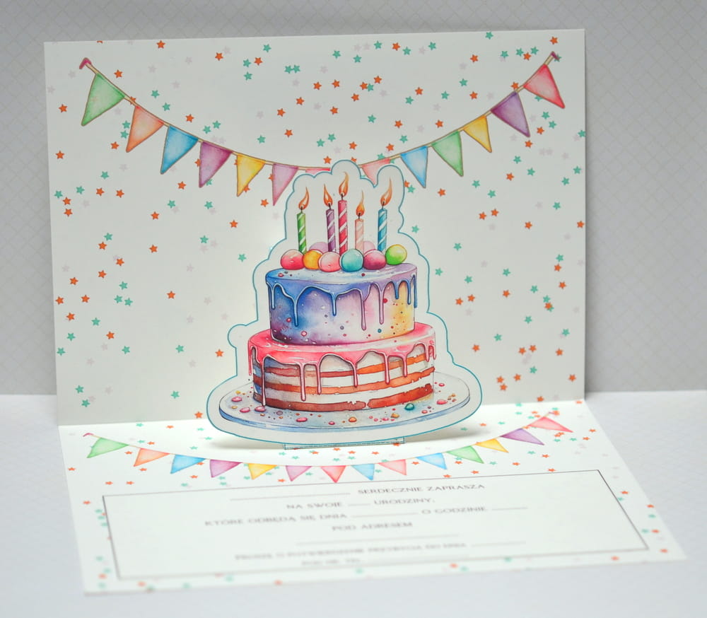 Arkusz A4 zaproszenie 01B urodziny POP UP tort arkusz 1/2