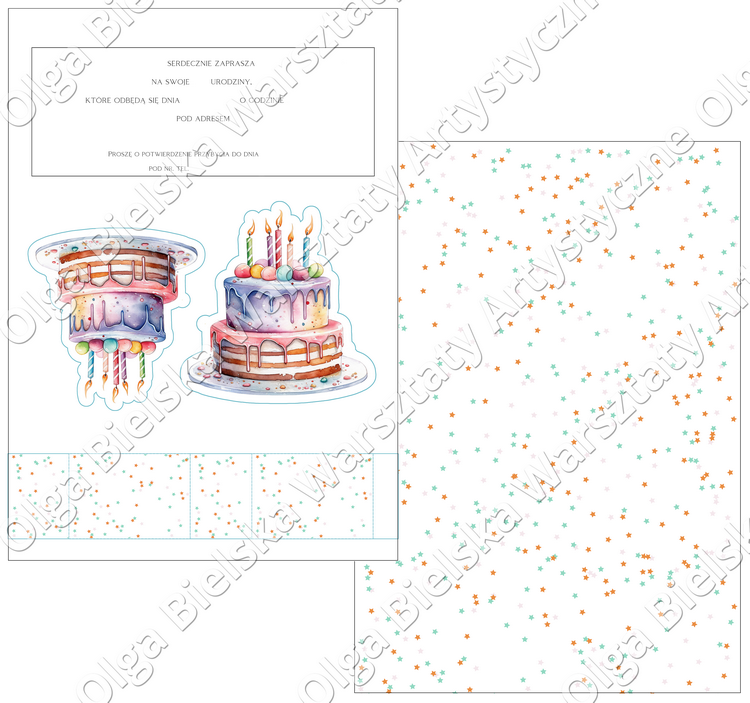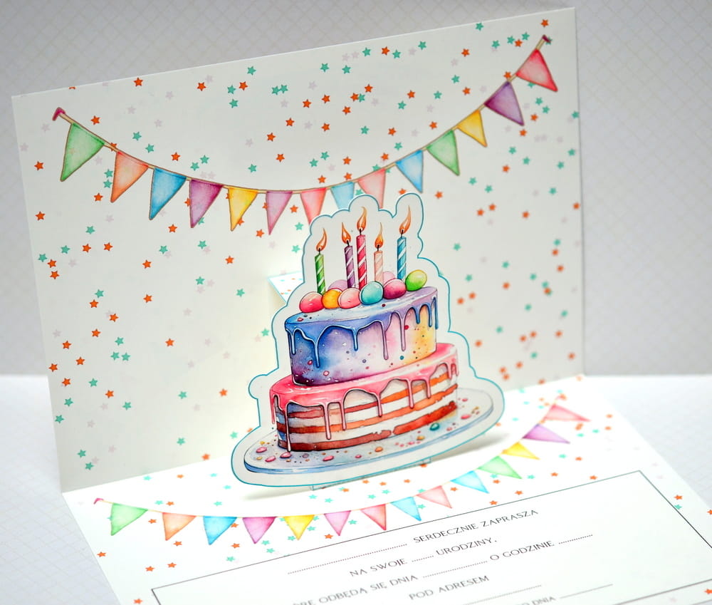 Arkusz A4 zaproszenie 02A/B urodziny POP UP tort arkusz 2/2