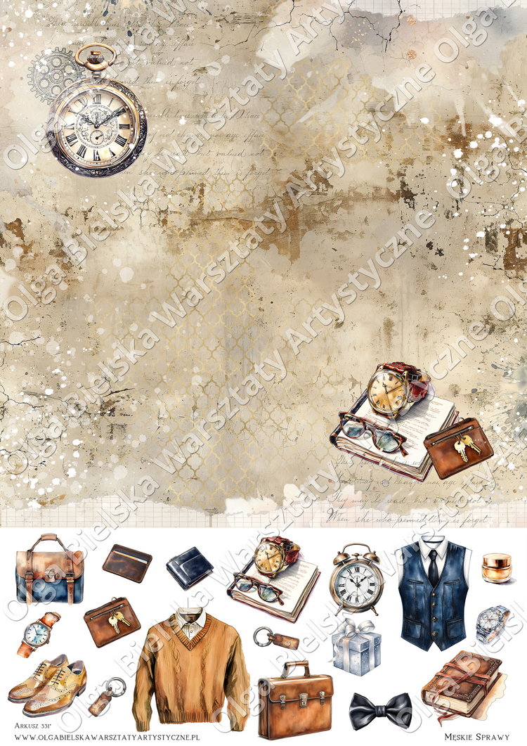 DUŻY zestaw A3 Męskie Sprawy 6 arkuszy + dodatki Olga Bielska Warsztaty Artystyczne