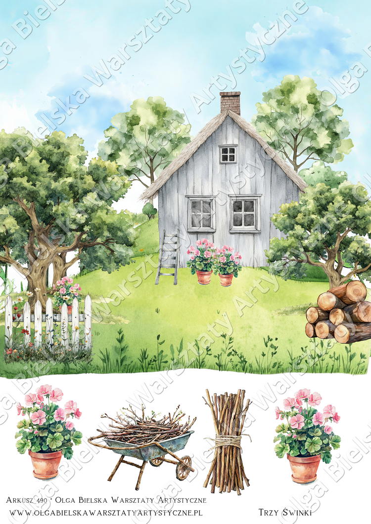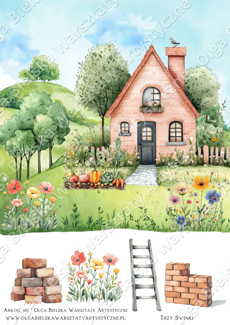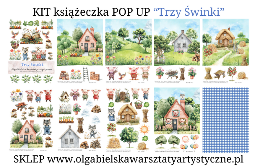 Kolekcja papierów do wykonania książeczki POP UP "Trzy Świnki" zaprojektowana przez Olga Bielska Warsztaty Artystyczne