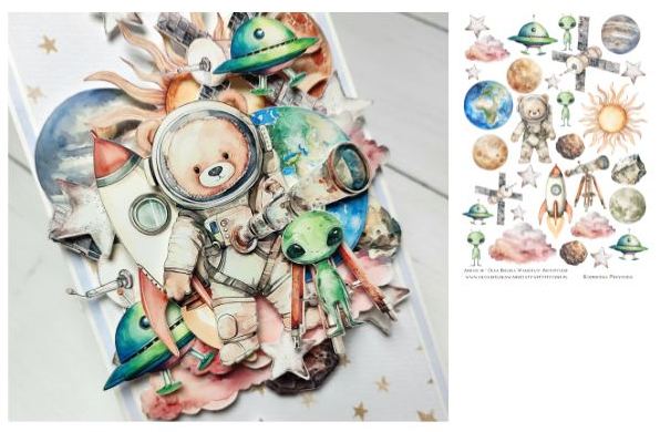 MATOWE grafiki arkusz 191 astronauta kosmos urodziny A4 grafiki do wycinania