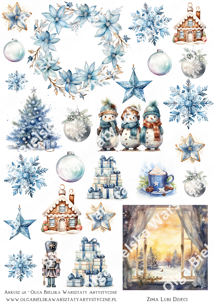 MATOWE grafiki arkusz A4 121bałwanki zima grafiki do wycinania