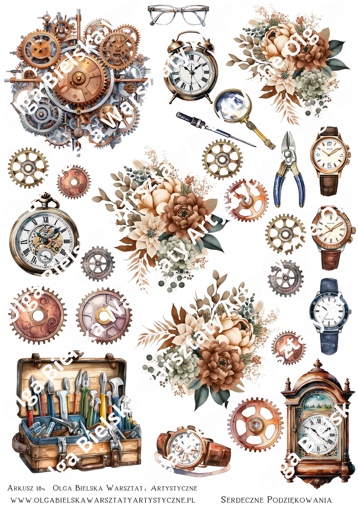 arkusz wycinanek nr 184 zegarmistrz scrapbooking steampunk