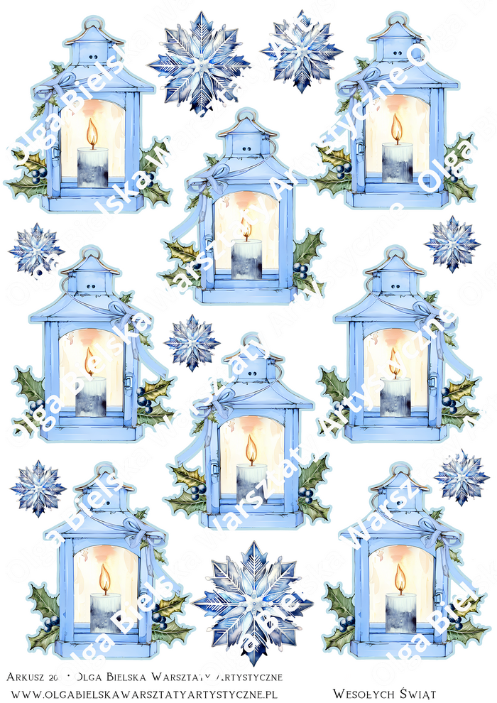MATOWE grafiki arkusz A4 208 lampionik niebieski do exploding box'a Boże Narodzenie do wycinania