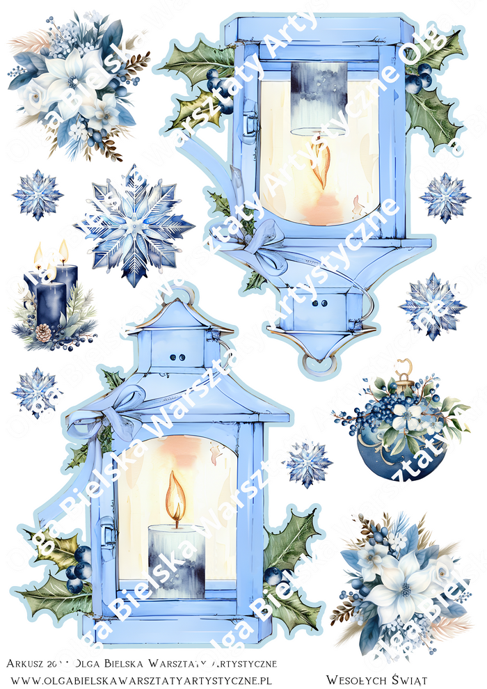 MATOWE grafiki arkusz A4 209 lampion niebieski duży Boże Narodzenie do wycinania