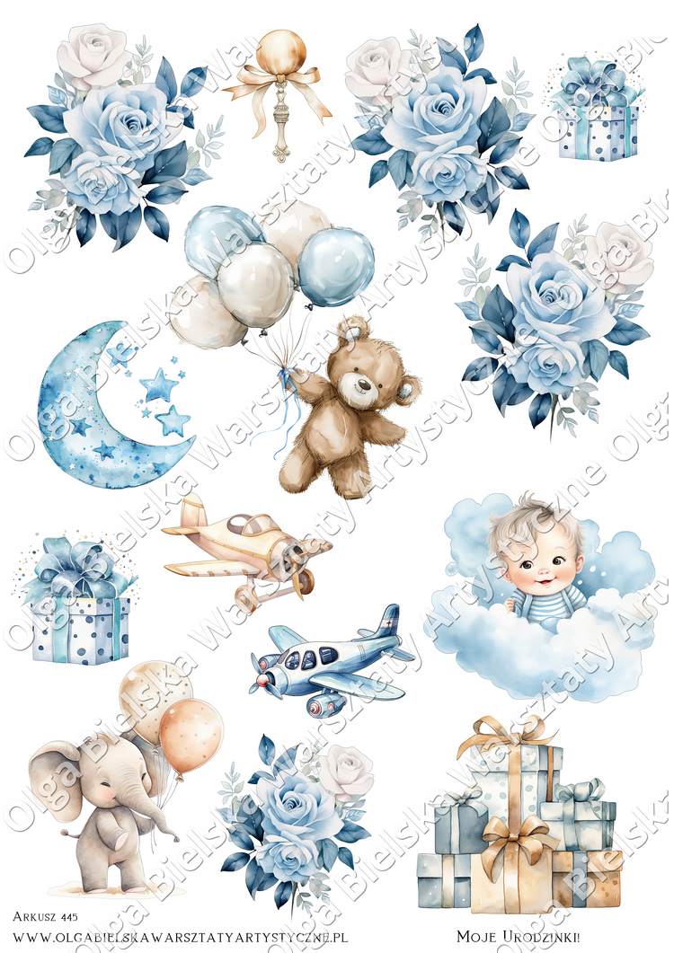 arkusz wycinanek nr 445 balon 1z2 DZIECKO chłopiec