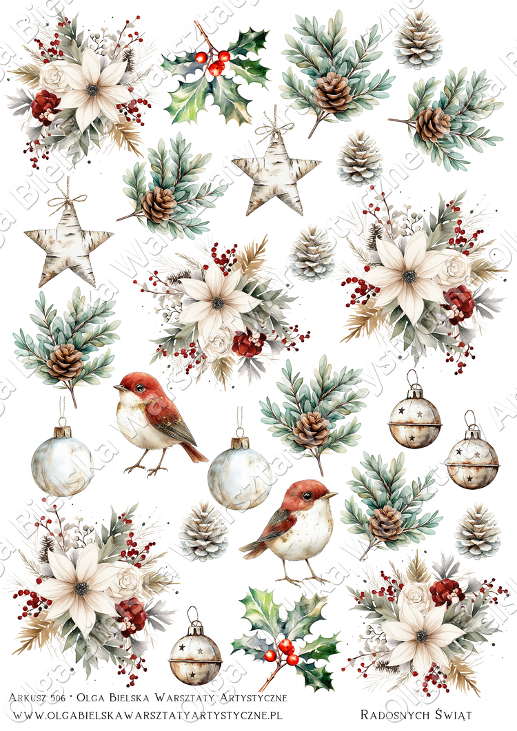 arkusz wycinanek nr 506 Boże Narodzenie 2025 wianek z ptaszkami