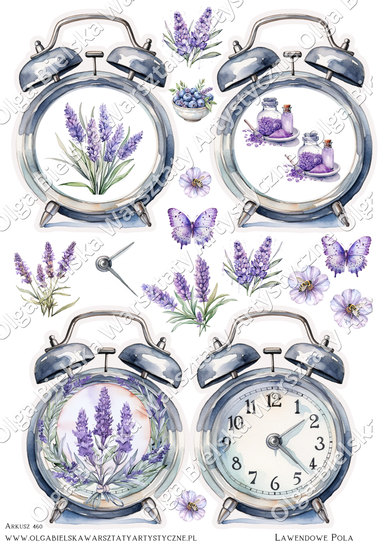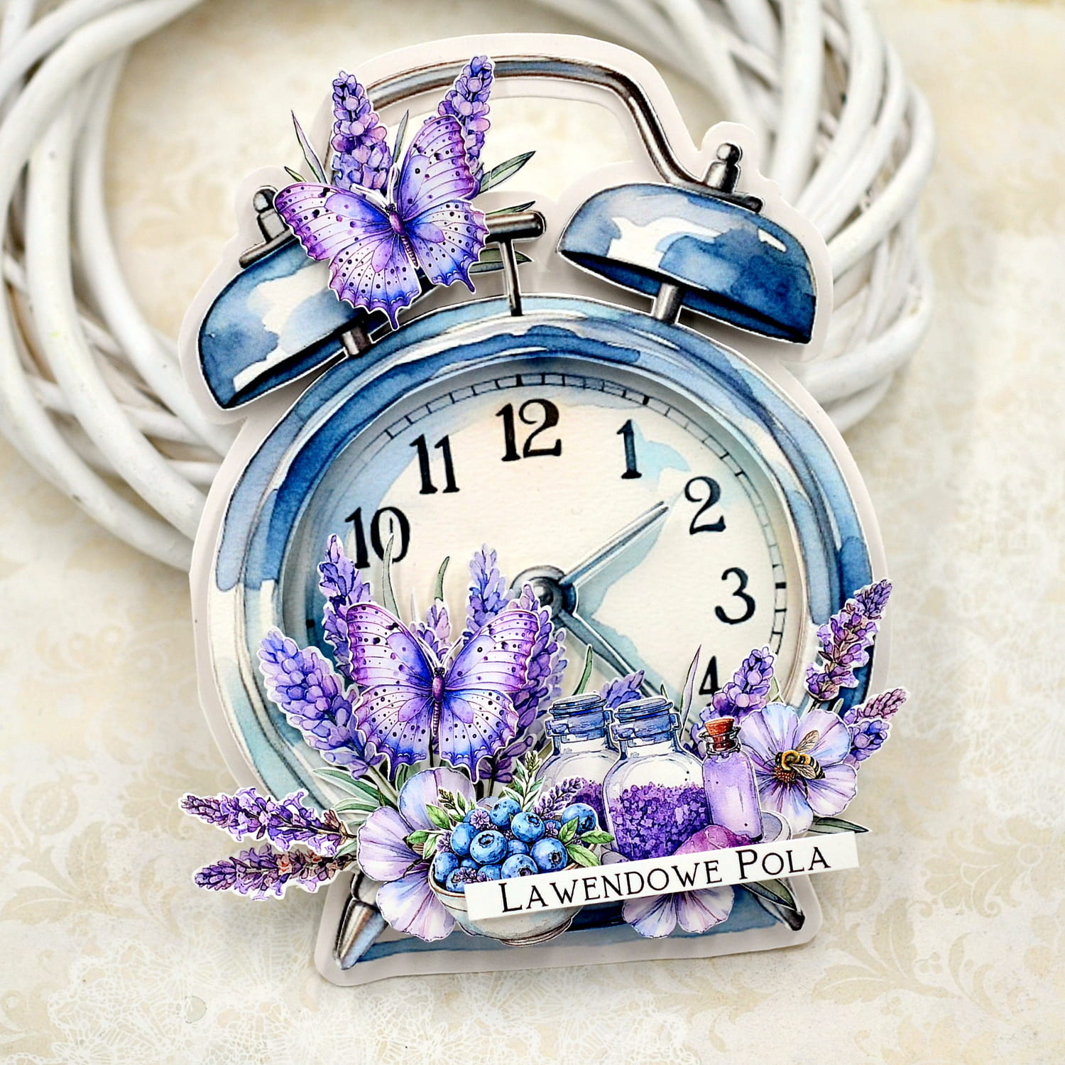 arkusz wycinanek jednostronny nr 460 kolekcja Lawendowe Pola -budzik 3D shadow box, shaker
