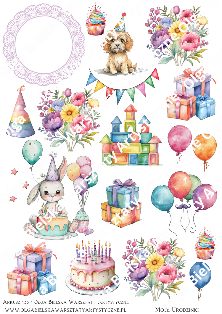 SATYNOWE grafiki arkusz 238 dodatki urodziny cyfra 4 grafiki do wycinania A4