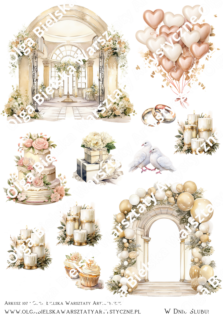 SATYNOWE grafiki arkusz A4 108 SCENKA POP UP ŚLUB grafiki do wycinania