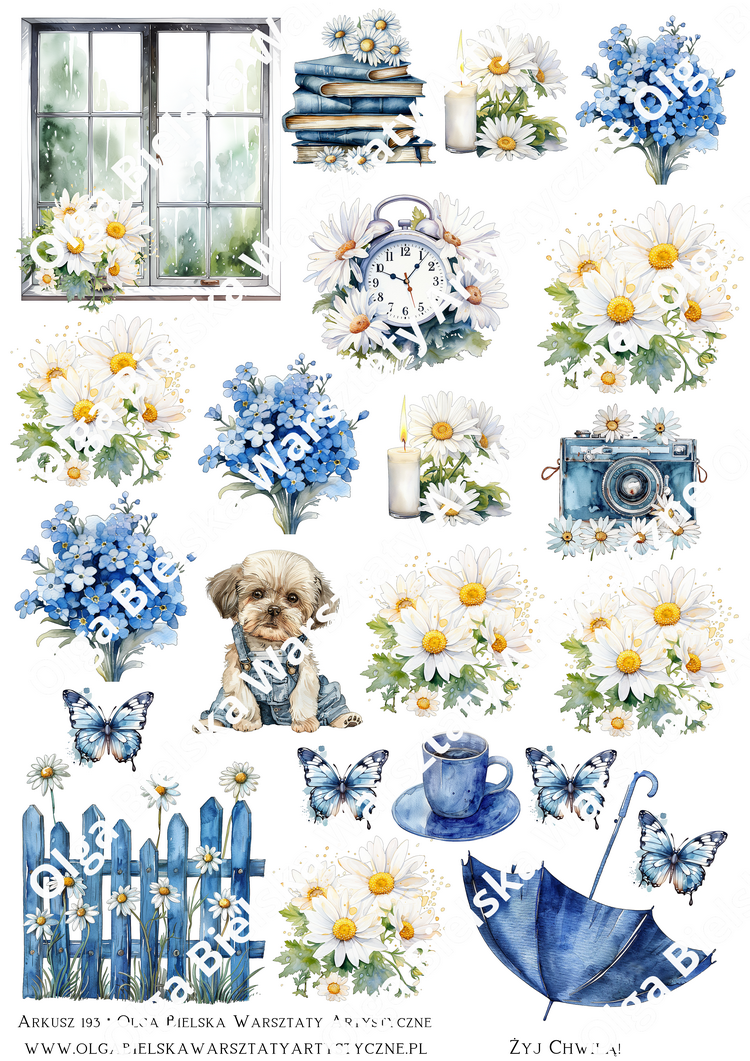 arkusz wycinanek nr 193 jeans i stokrotki