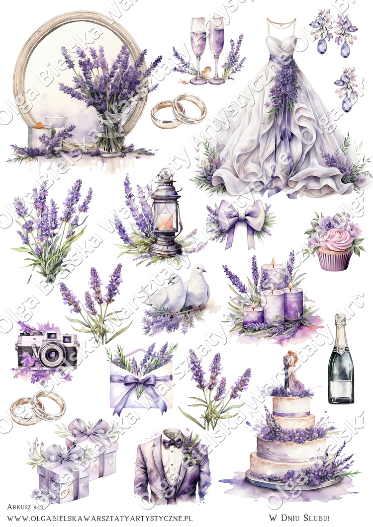 arkusz wycinanek jednostronny nr 449 kolekcja Lawendowe Pola - ślub, rocznica ślubu