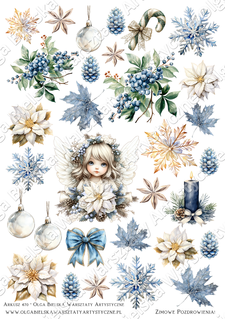 arkusz A4 470 jednostronny zimowy aniołek - świąteczne scrapowanie 2025