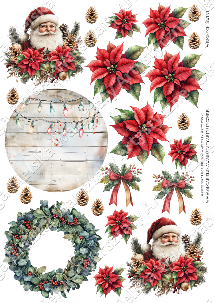 arkusz A4 588 jednostronny 1/2 gwiazdka świąteczne scrapowanie 2025