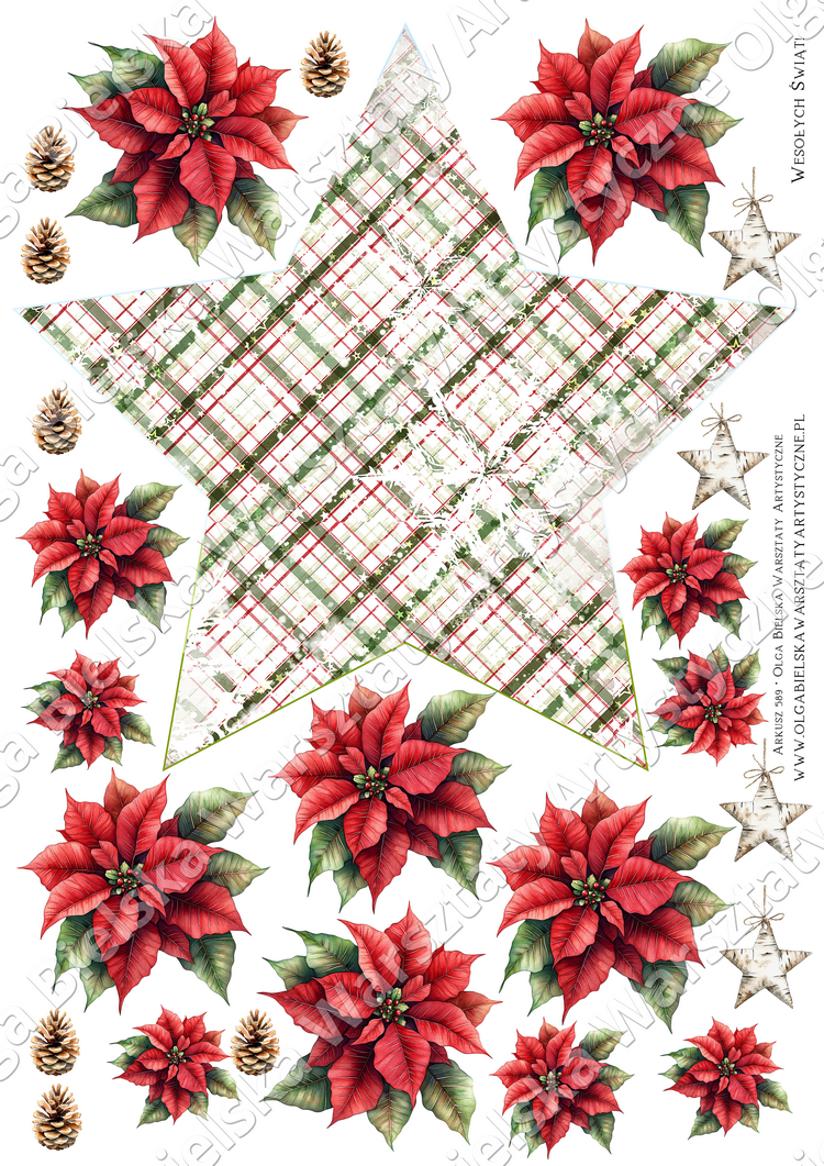 arkusz A4 589 jednostronny 2/2 gwiazdka świąteczne scrapowanie 2025
